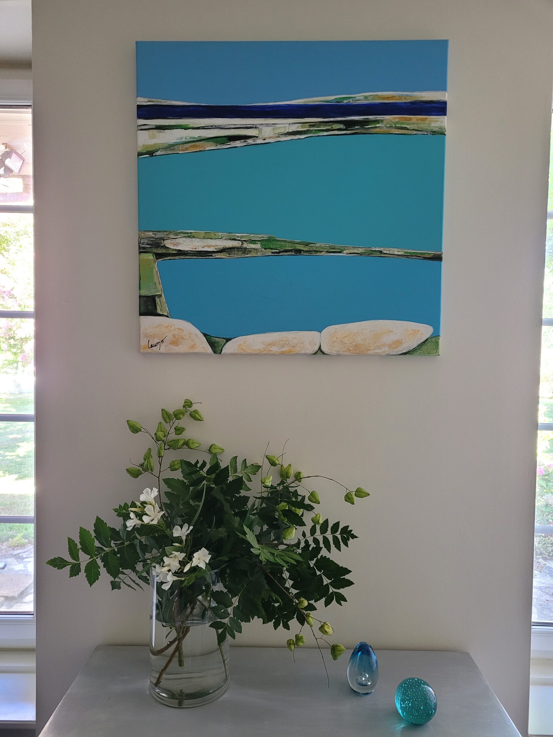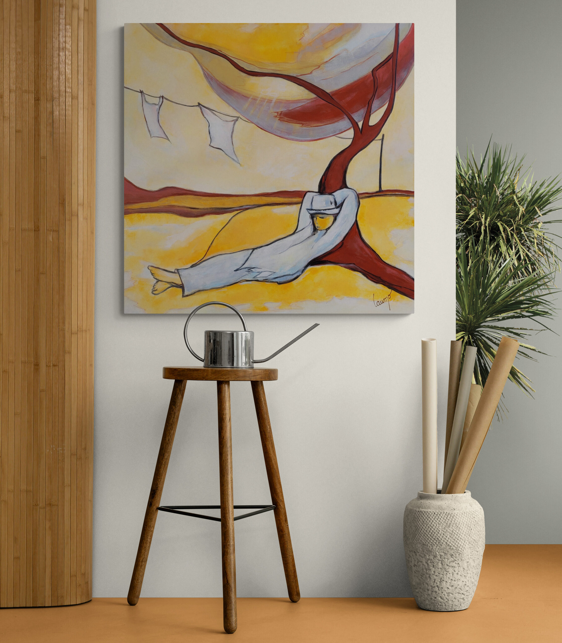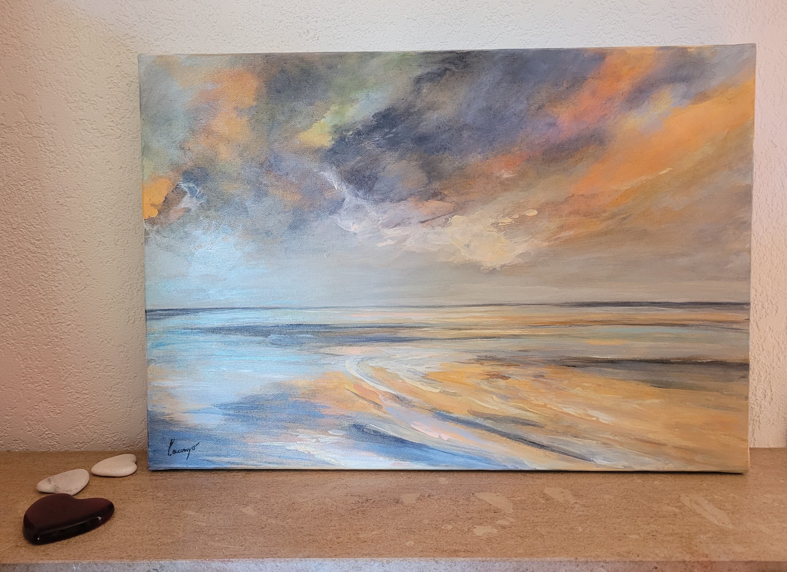 La signature est au dos de la toile ce qui permet un positionnement vertical ou horizontal selon son goût. »