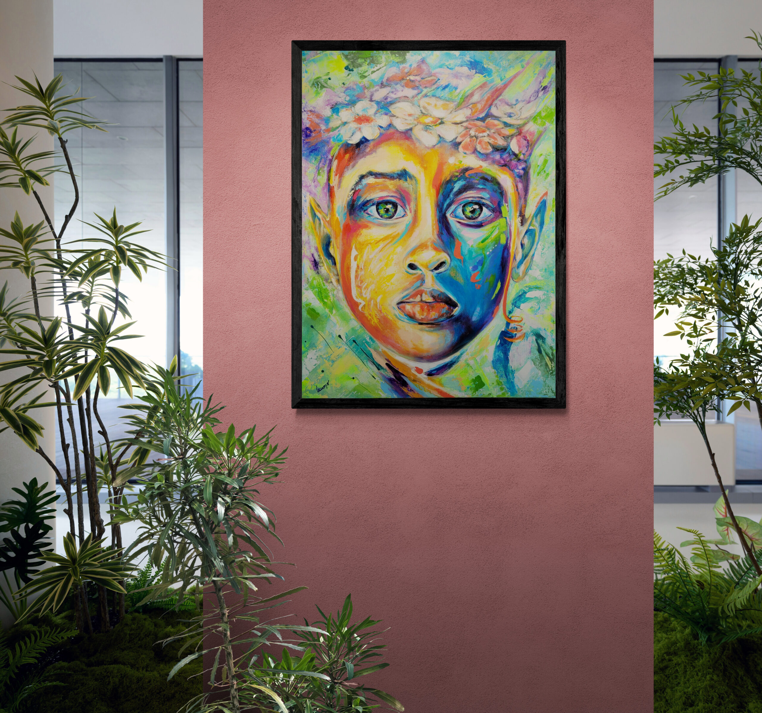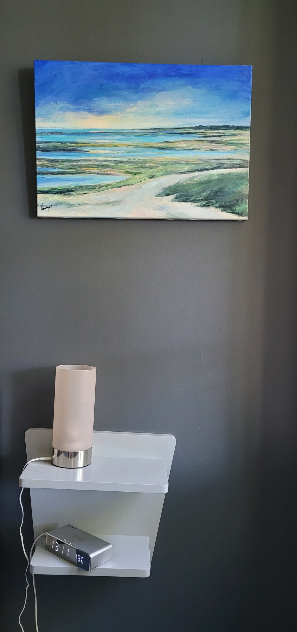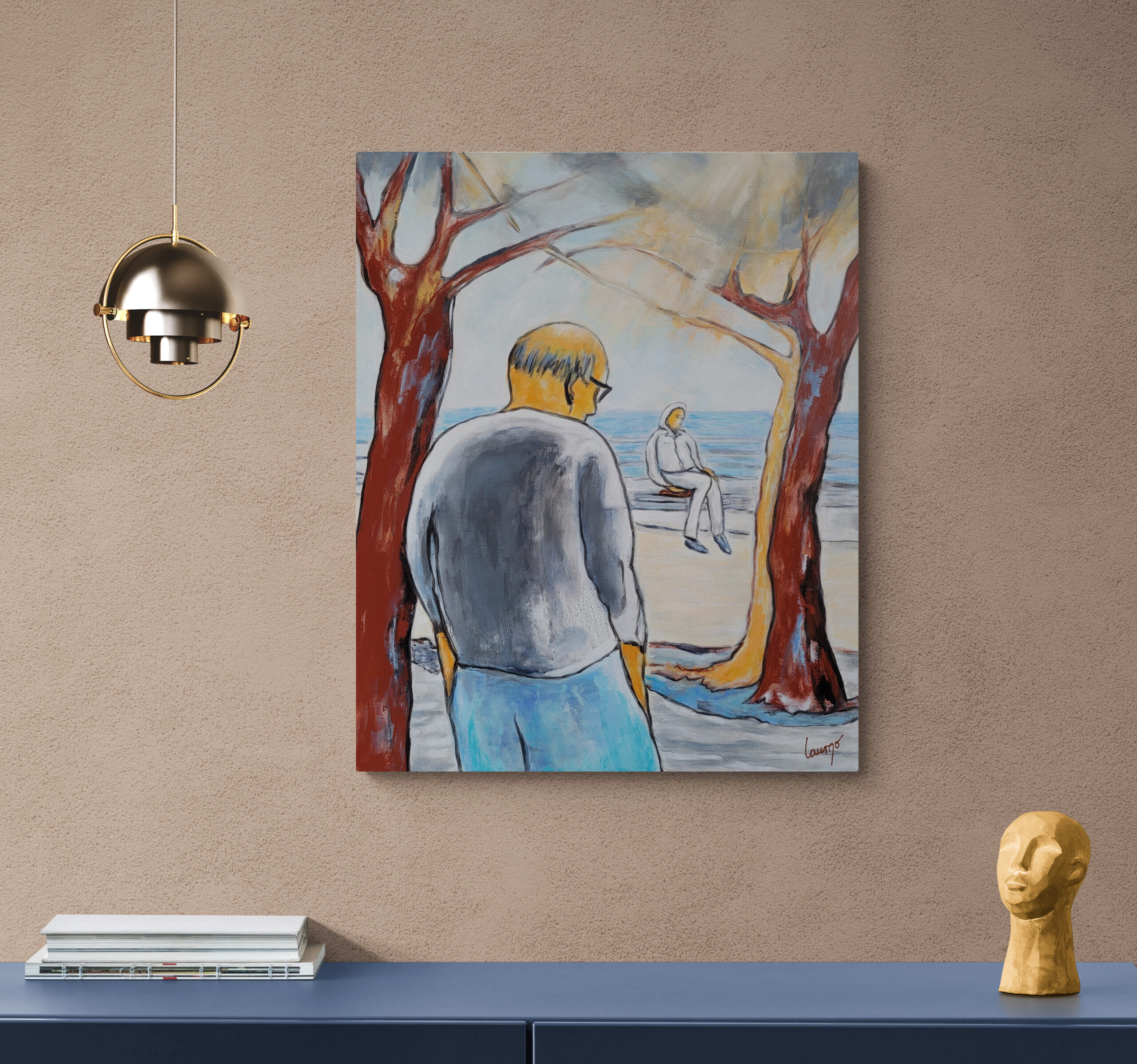 La signature est au dos de la toile ce qui permet un positionnement vertical ou horizontal selon son goût. »