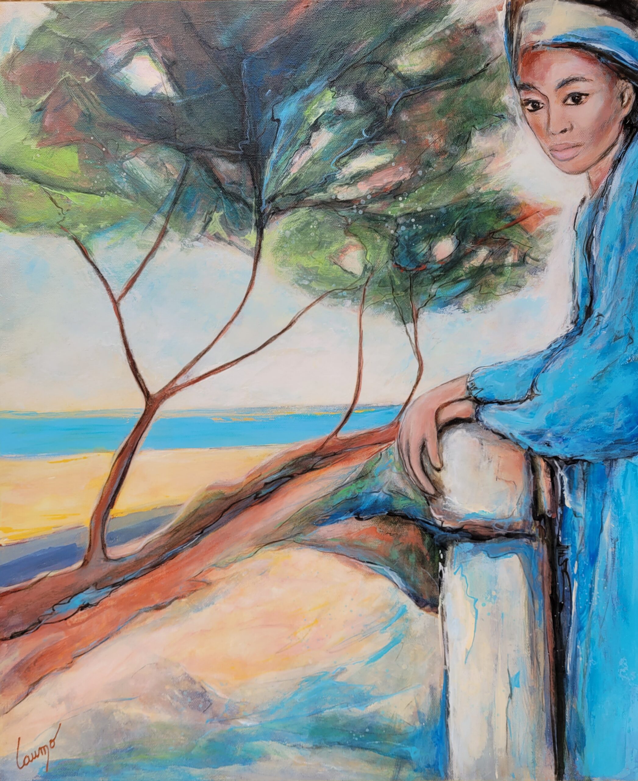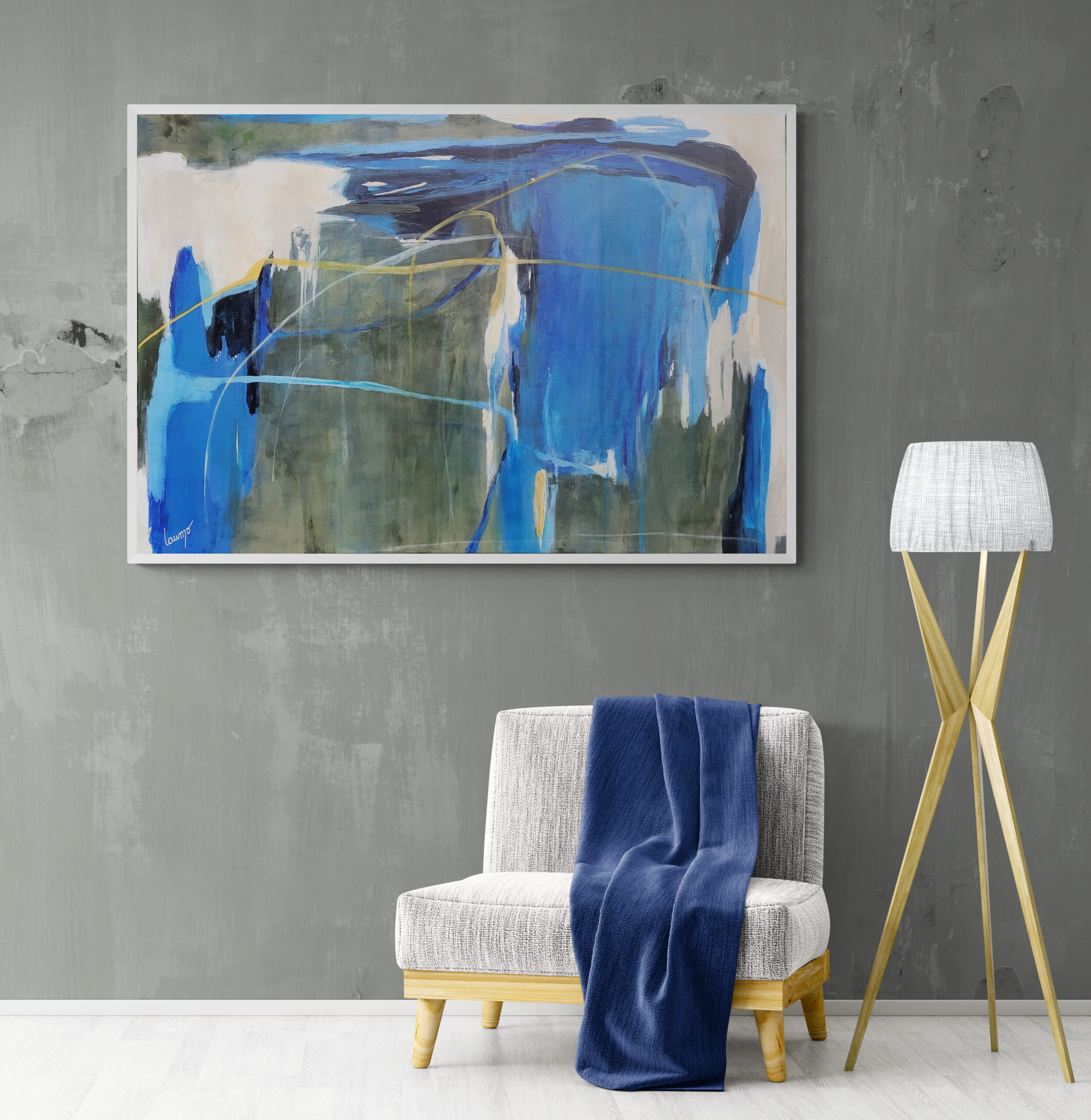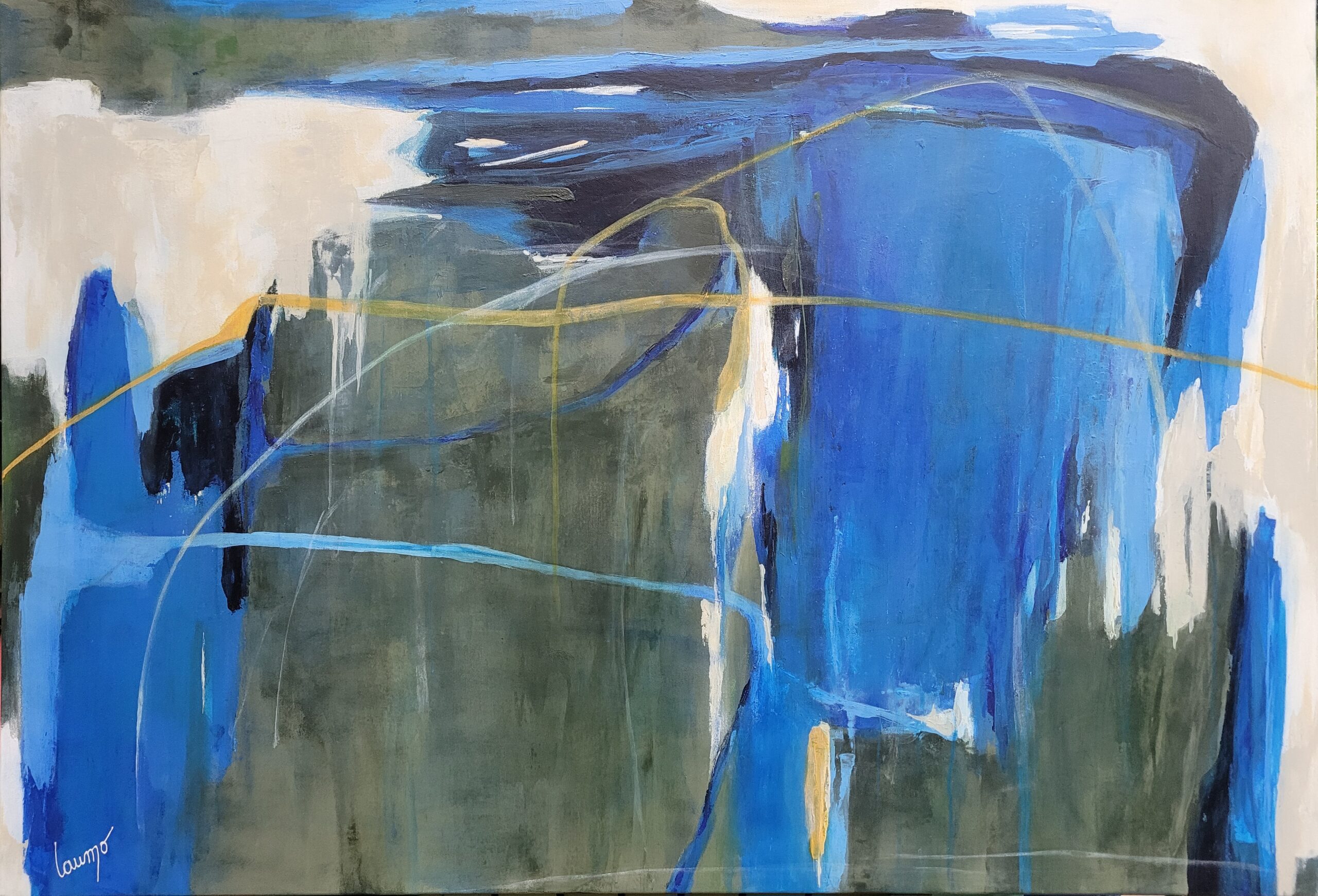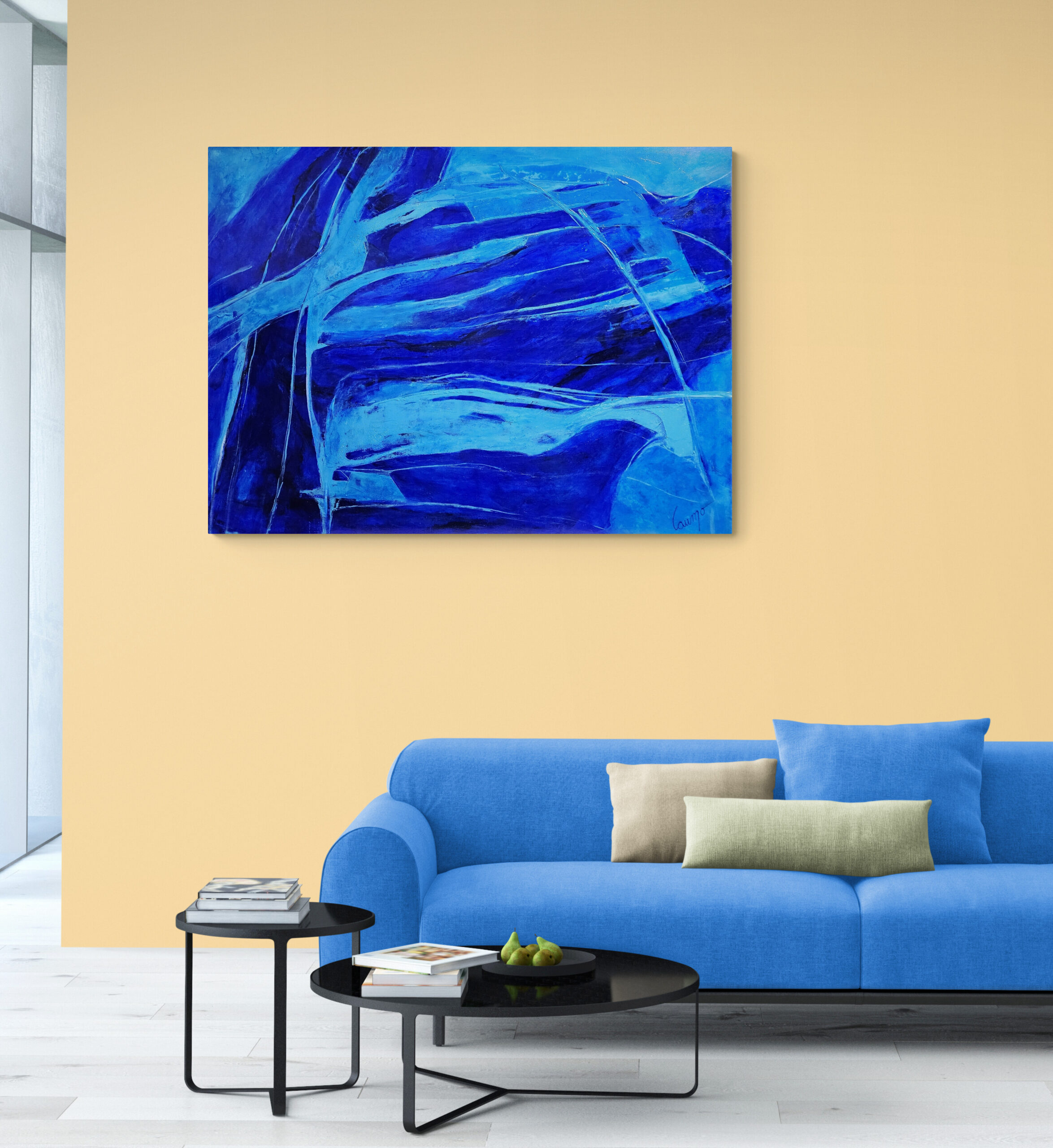 « J’ai voulu créer un tableau où chaque nuance de bleu est un fragment de mémoire, où les teintes se superposent comme des strates de temps, où des émotions enfouies remontent vers la surface afin qu’au cœur de ce bleu multiple, quelque chose se rappelle un horizon perdu, un rêve oublié…, le tableau devenant alors un paysage mental, un mouvement d’âme suspendu parce que chaque teinte révèle une vibration intime. »