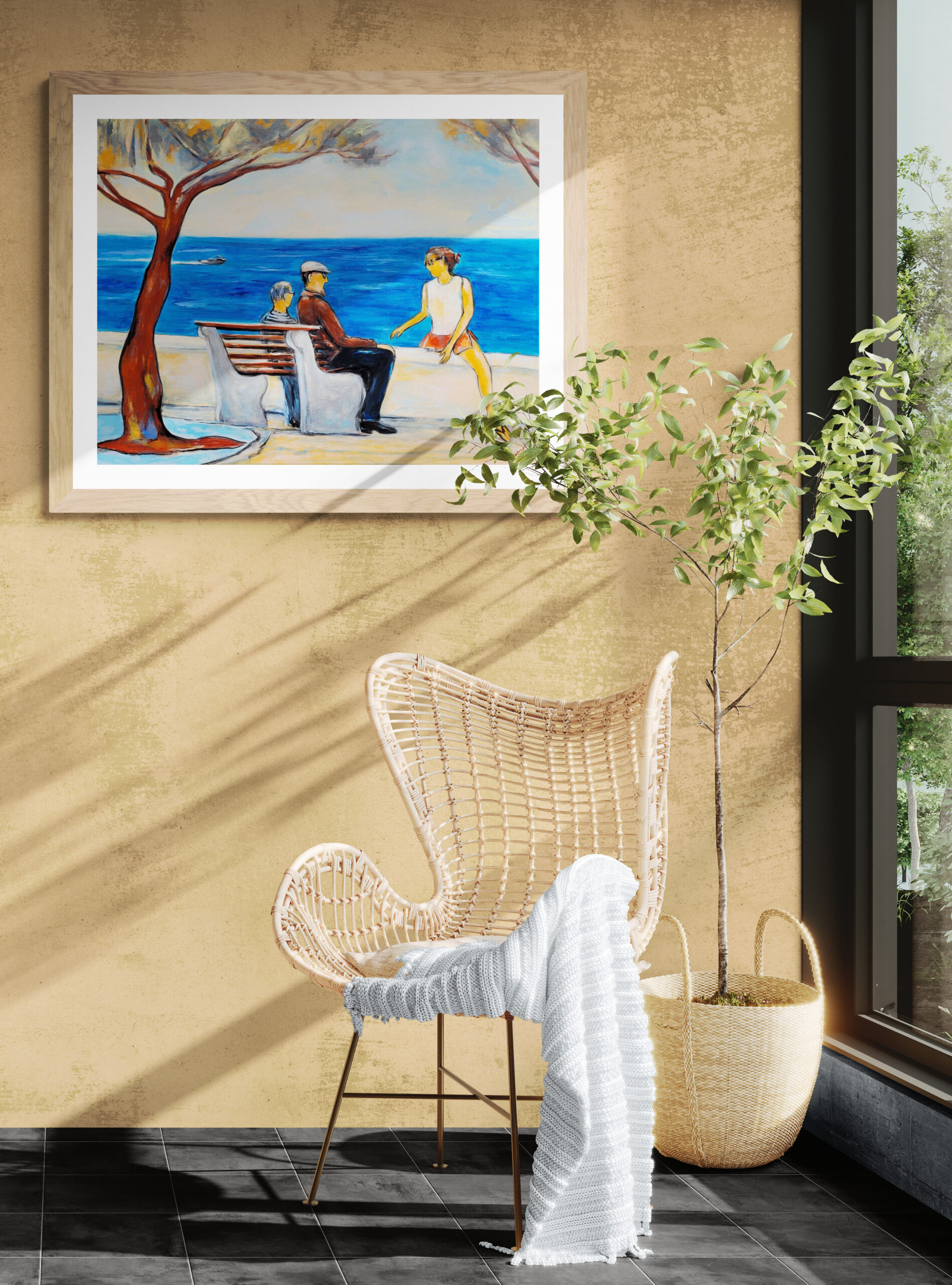 « La mer murmure, ses lignes s’étirent, se croisent, se perdent, comme des souvenirs de vagues… La lumière glisse, fragile, sur les reflets d’azur, rappelant la respiration de l’océan…