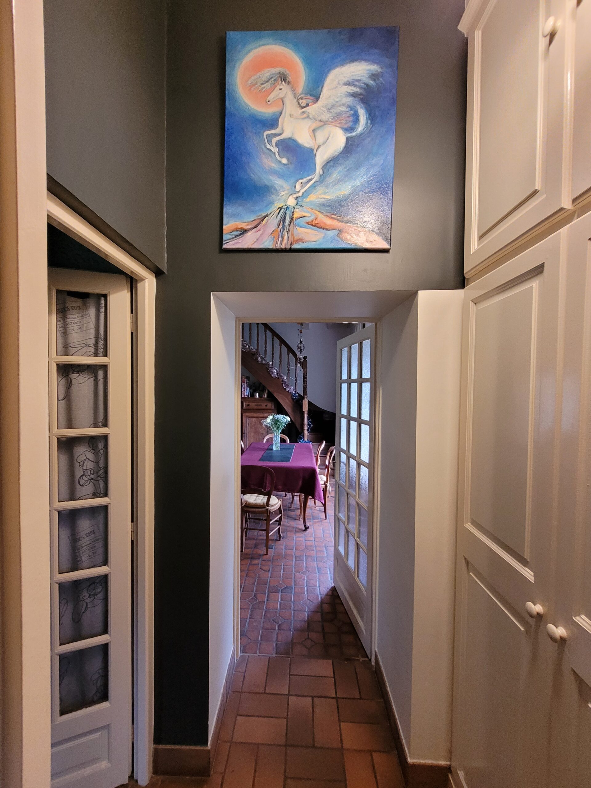« Pour ce tableau je me suis inspirée de mes rêves d’enfant, de cet univers féerique présent dans mes souvenirs remplis d’histoires magiques et merveilleuses… »